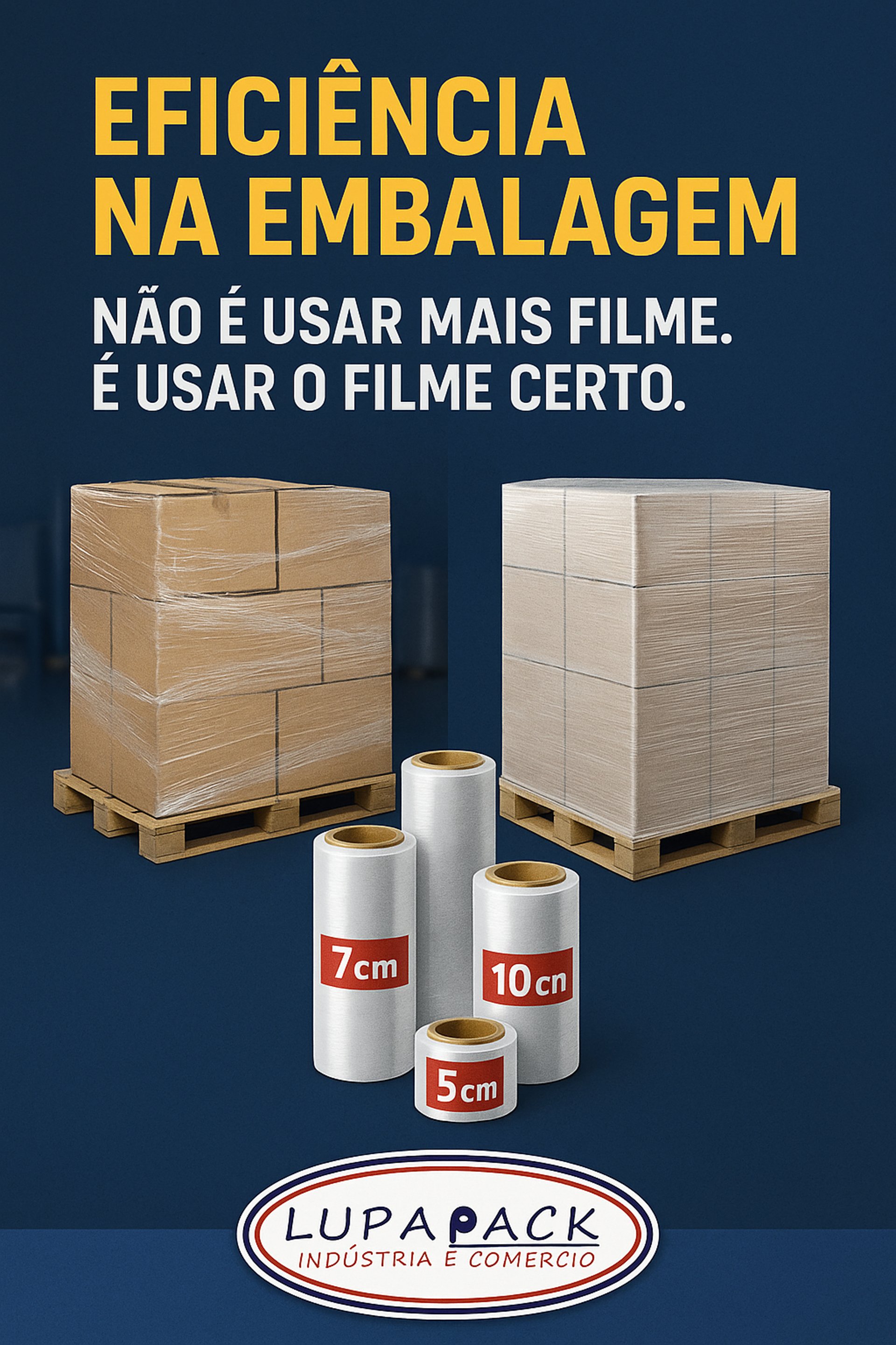 Com 13 anos de experiência no mercado, a Lupapack é referência na fabricação e corte sob medida de filme stretch para uso industrial e logístico. Atendemos empresas de todo o Brasil com soluções práticas, versáteis e eficientes para embalagem, proteção e agrupamento de peças.