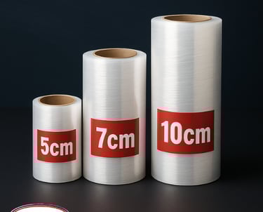 Produzimos bobinas sob medida (5cm, 7cm, 10cm e mais) para embalar com precisão e eficiência.